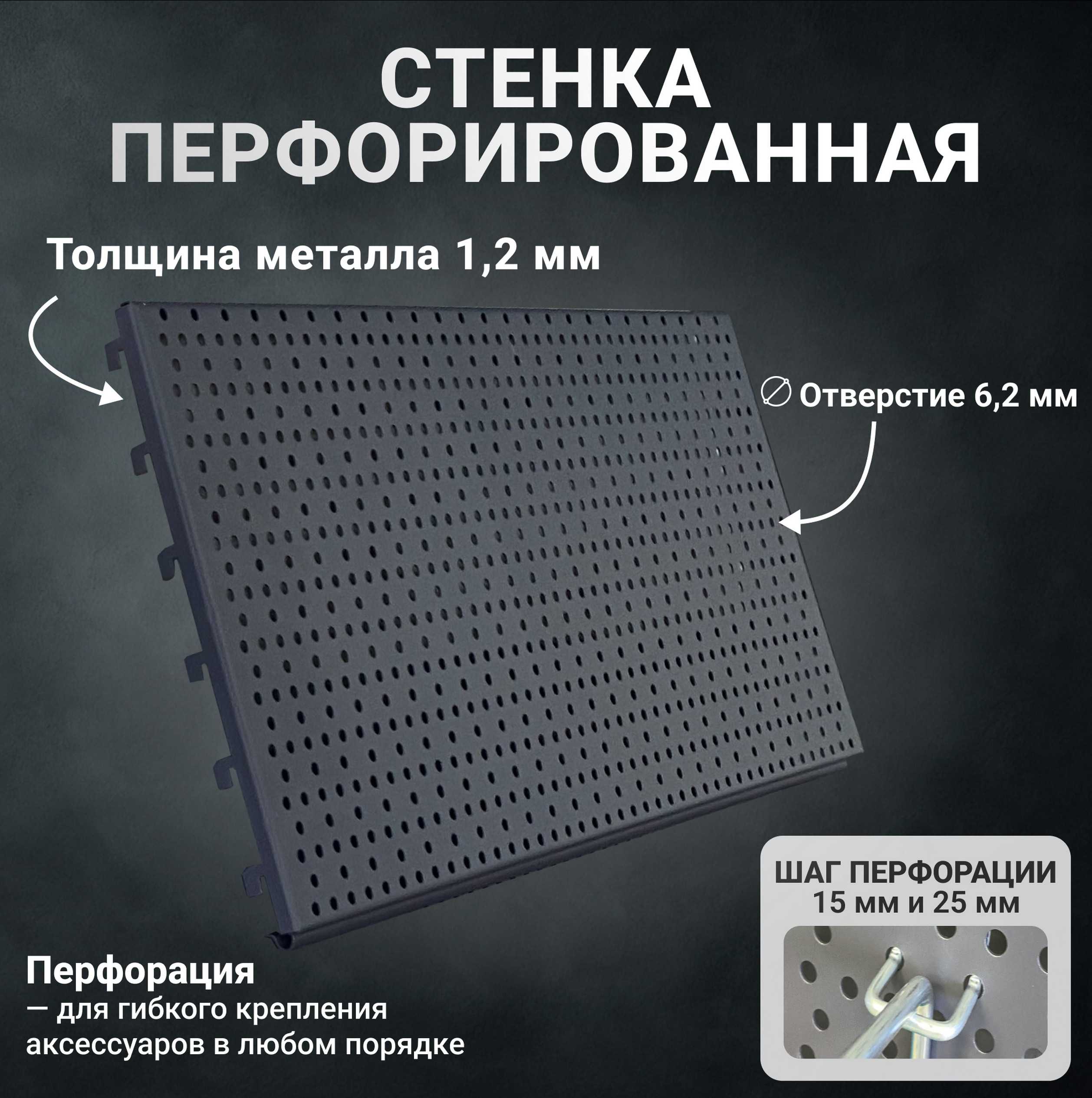 Металлическая перфорированная панель 30х100 см