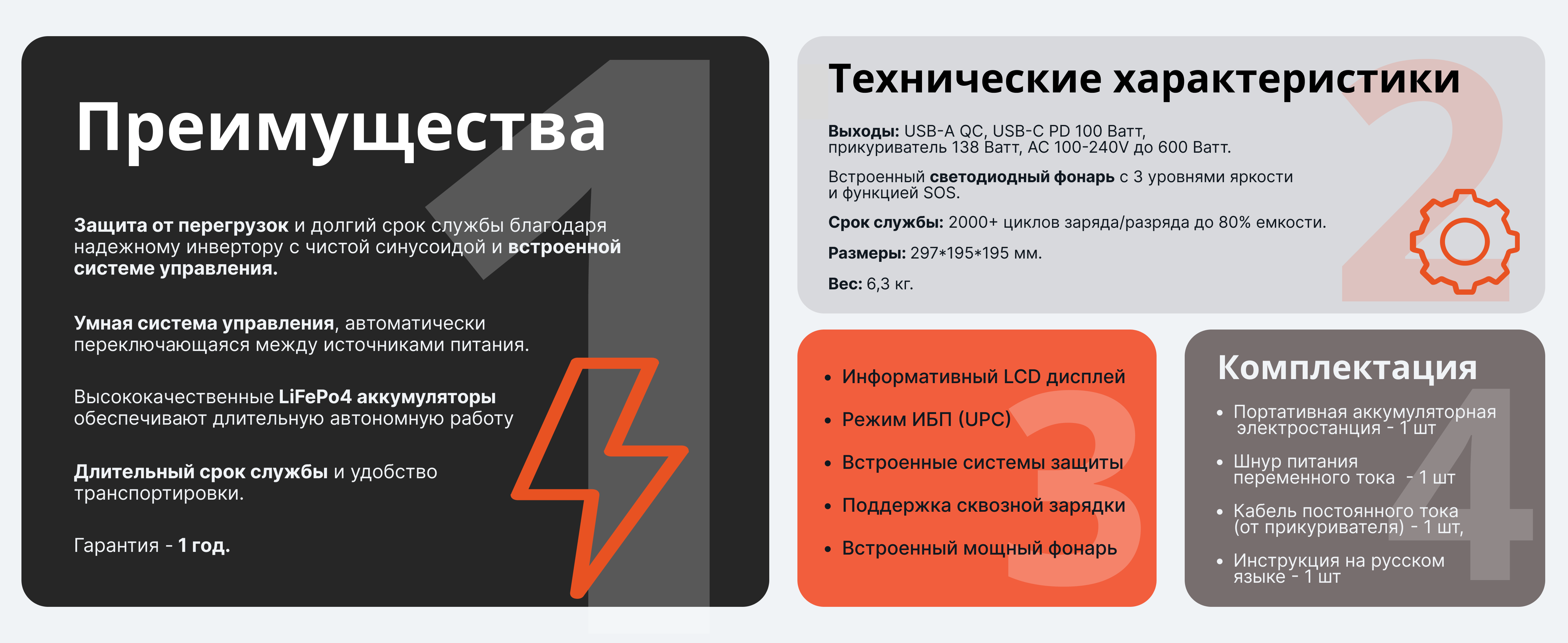 Портативная электростанция VOLAT VT-PS600 - надежный и удобный источник резервного питания мощностью 600 Вт, идеально подходящий для использования дома и на природе. Благодаря своему компактному дизайну и удобной ручке, VOLAT VT-PS600 станет незаменимым спутником в длительных поездках, позволяя вам оставаться на связи и обеспечивать питание для различных устройств в любом месте.