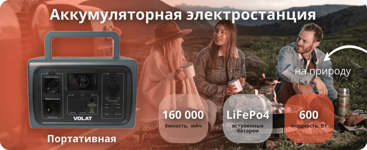 Дополнительная информация: VOLAT VT-PS600 можно заряжать от автомобильной розетки, стационарной сети 220В и солнечных панелей. С гарантией на 1 год эта портативная электростанция станет вашим надежным источником энергии для загородных поездок и повседневного использования.